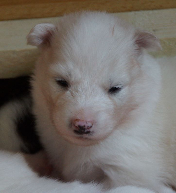 Kalevi wurde am Sonntag, 16.06.2024, um 06:05 Uhr als erster Welpe (dunkelblau) mit 320g geboren und war der Kleinste von allen. Kalevi gehört zum Rudel von Irene und Markus